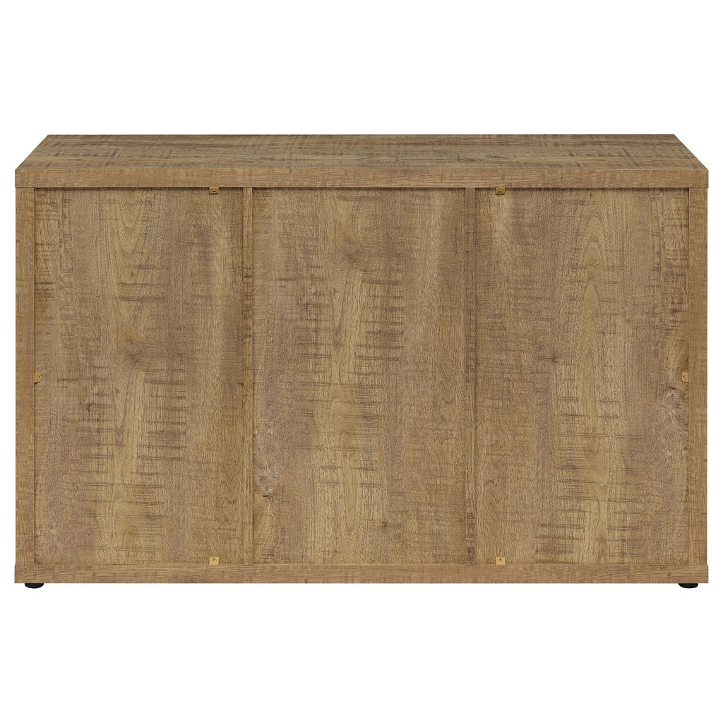 Infuse your space with the warmth of this rustic 2-door cabinet, an embodiment of both form and function. Crafted with meticulous attention to detail, it features engineered wood adorned with a mango wood-look laminate that captures the essence of reclaimed timber. The unique hardware adds an industrial touch, while the interior boasts two height-adjustable shelves with a central divider, allowing you to customize the storage to your needs. This cabinet doesn't just offer storage—it brings a piece of nature's tranquility into your home.