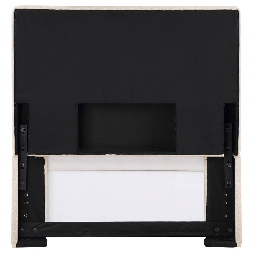 Smooth edges embellish the clean aesthetic of this modern headboard, an ideal partner for a bed designed to anchor a primary or guest suite. This upholstered headboard blends simplicity and sophistication to transform a bedroom into a haven for relaxation.