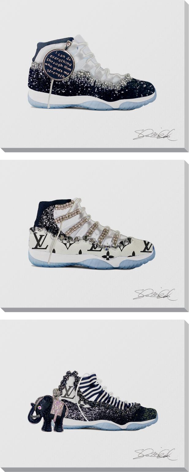 Print On Canvas With Crystal And Giltter Decor (Set Of 3) Curated Canvas