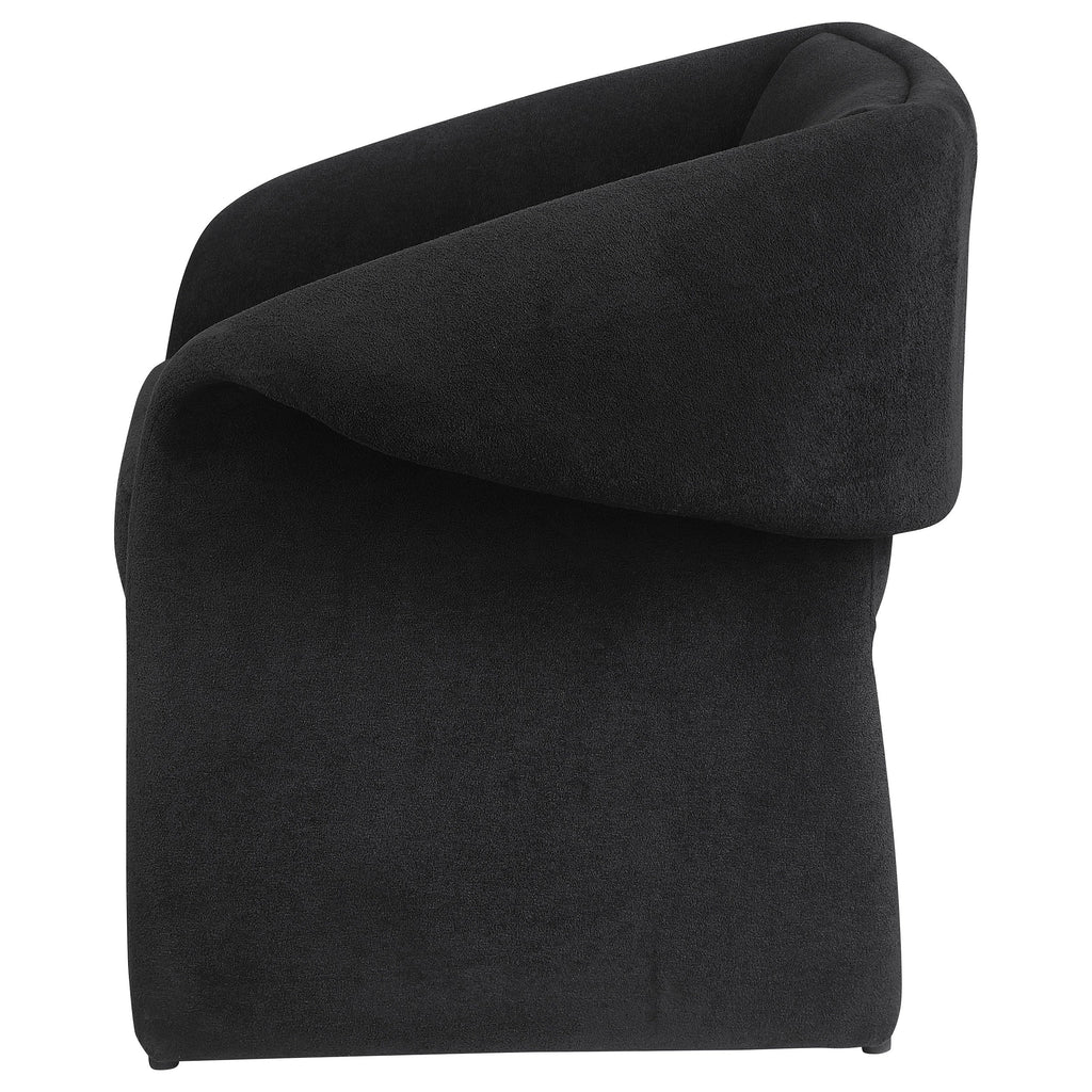 Upgrade the designer style of your living space with the ingenious silhouette of this modern accent armchair. Designed to impress, it features a classic stance with beautifully curled arms that capture attention without overwhelming. The lovely design is complemented with the organic texture of beautiful upholstery fabric, in a neutral hue that sets the tone for your space. The chair features foam cushioning with a streamlined look, perfectly enhancing its gentle curves and slopes. Add it to an existing seating group for eclectic flair, or choose a pair for a cozy ambiance.