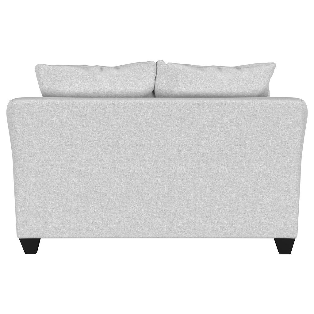 Infuse your living room with understated glamour. The cool, casual design of this classic loveseat adds an element of traditional style to any home. Warm, neutral, grey upholstery is accentuated by contrasting accent pillows. Its sturdy frame is topped with high-density, full-foam seat cushions for firm, comfortable support. Pair this loveseat with a matching sofa to create an inviting atmosphere in any home.