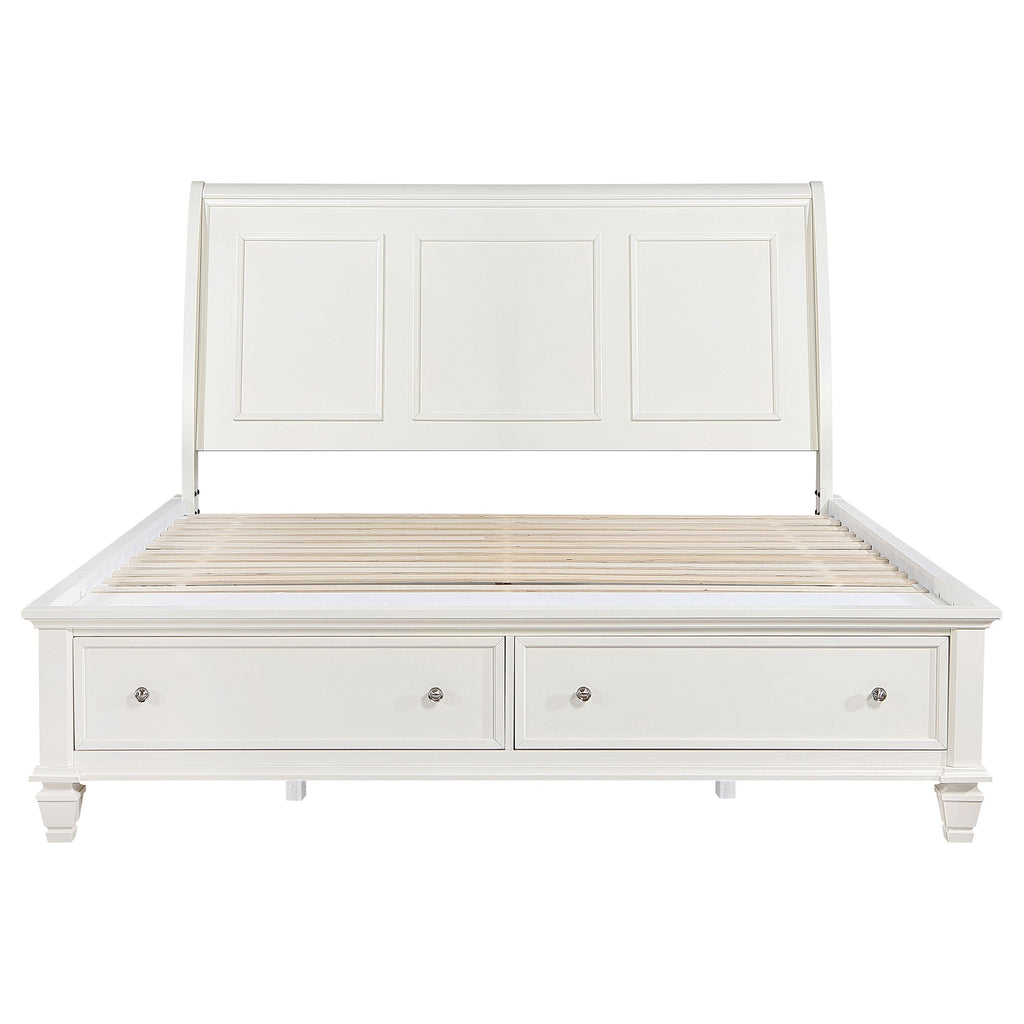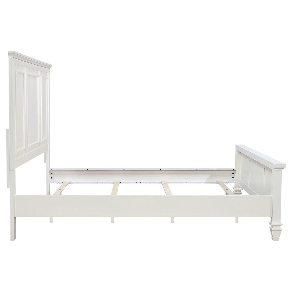 Bring a touch of classic distinction to your bedroom with this elegantly crafted coastal style panel bed. The headboard and footboard feature detailed carved panels, adding depth and sophistication to its design. Finished in a clean neutral color, the bed effortlessly complements a variety of decor styles. Built from a combination of solid hardwood and engineered wood, this bed offers lasting durability and timeless style. Designed to be used with a foundation, this bed is perfect for traditional, transitional, or contemporary spaces, becoming a refined centerpiece for any bedroom.