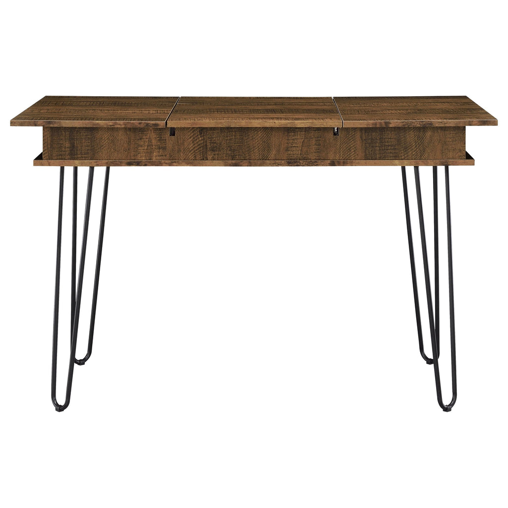 At first glance, it appears to be a simple writing desk with a hint of traditional charm. Yet when you flip open its top and pull out its sliding tray, and it reveals a plethora of pleasing features. Four spacious compartments offer discreet storage for your valuables. A built-in power outlet provides a useful charging station for electronics. With sleek, curved legs and a rustic amber finish, this versatile desk exudes convenience and class.