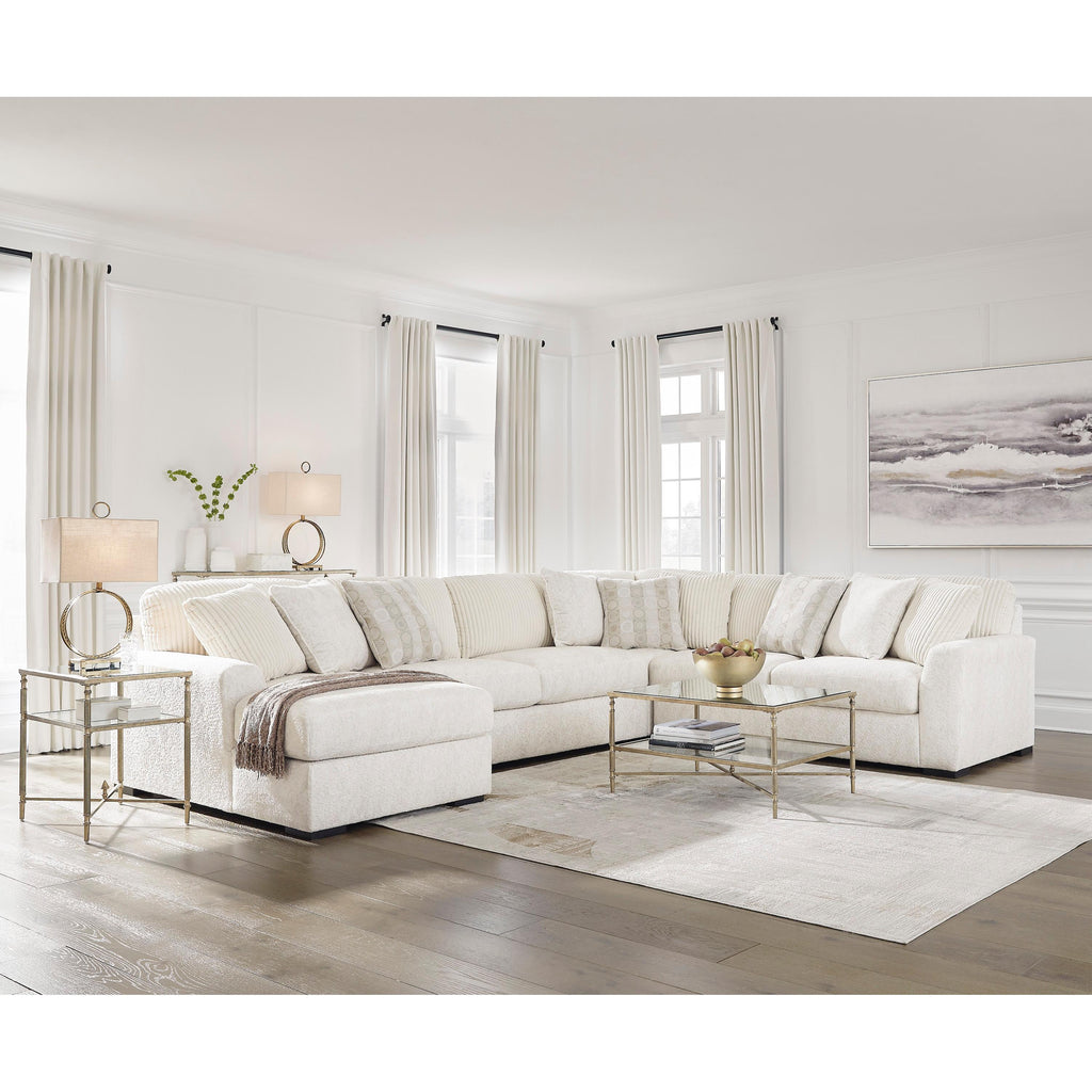 Reflect your uniquely versatile style personality with this sectional with chaise. Its plush upholstery is complemented with retro-cool corduroy on the back cushions, creating an ultra-soft seating experience with tons of eye-catching texture. Ready to refresh your aesthetic? The sectionalÕs transitional silhouette and neutral hue easily adapt to your style as it changes.