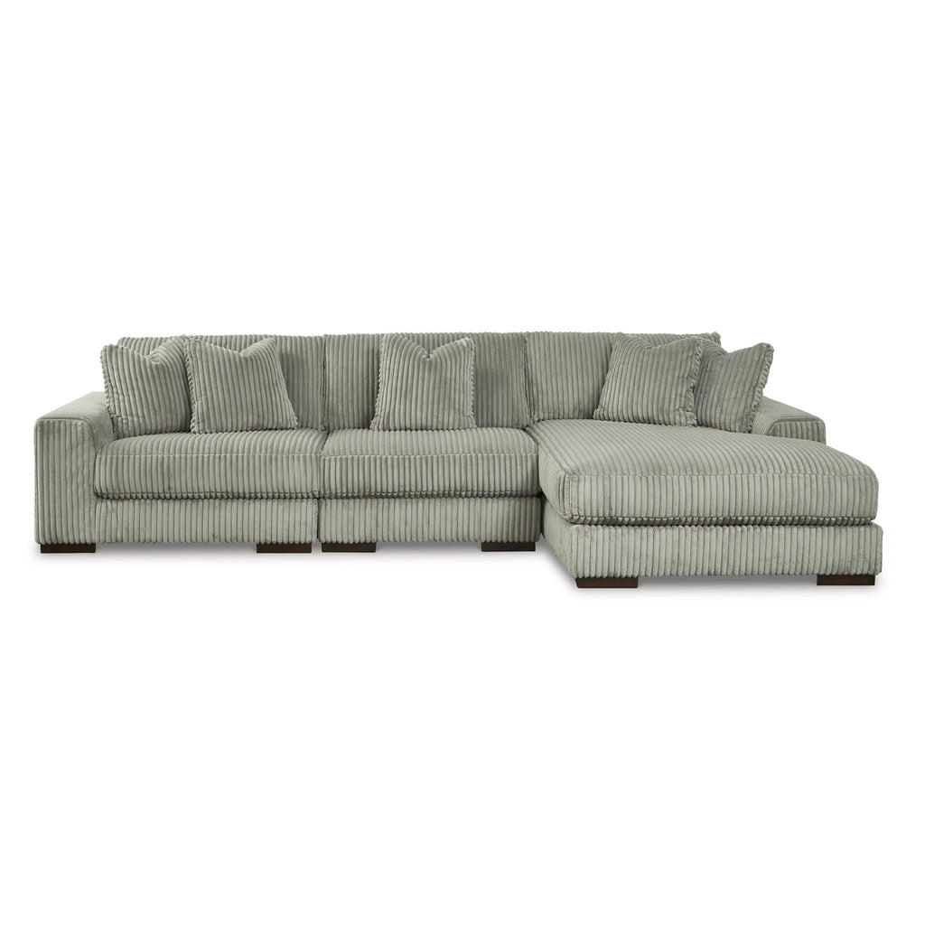 Plush and posh. Showcase your eye for on-trend texture with the statement-making cord upholstery of this sectional with chaise. Its stunningly soft fabric entices in a warm neutral hue, complementing contemporary color palettes. Sink into the cushions and plan to stay a whileÑthis cozy living room centerpiece highlights your high-end approach to comfort and style.