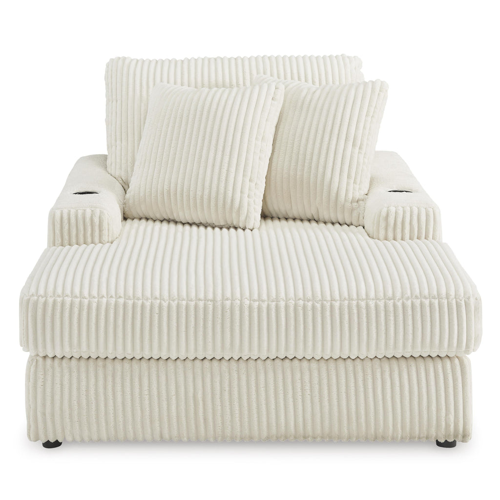 Plush and posh. Showcase your eye for on-trend texture with the statement-making cord upholstery of this chaise. Its stunningly soft fabric entices in an ivory hue, complementing contemporary color palettes. Sink into the cushions and plan to stay a whileÑthis cozy oversized chaise highlights your high-end approach to comfort and style.