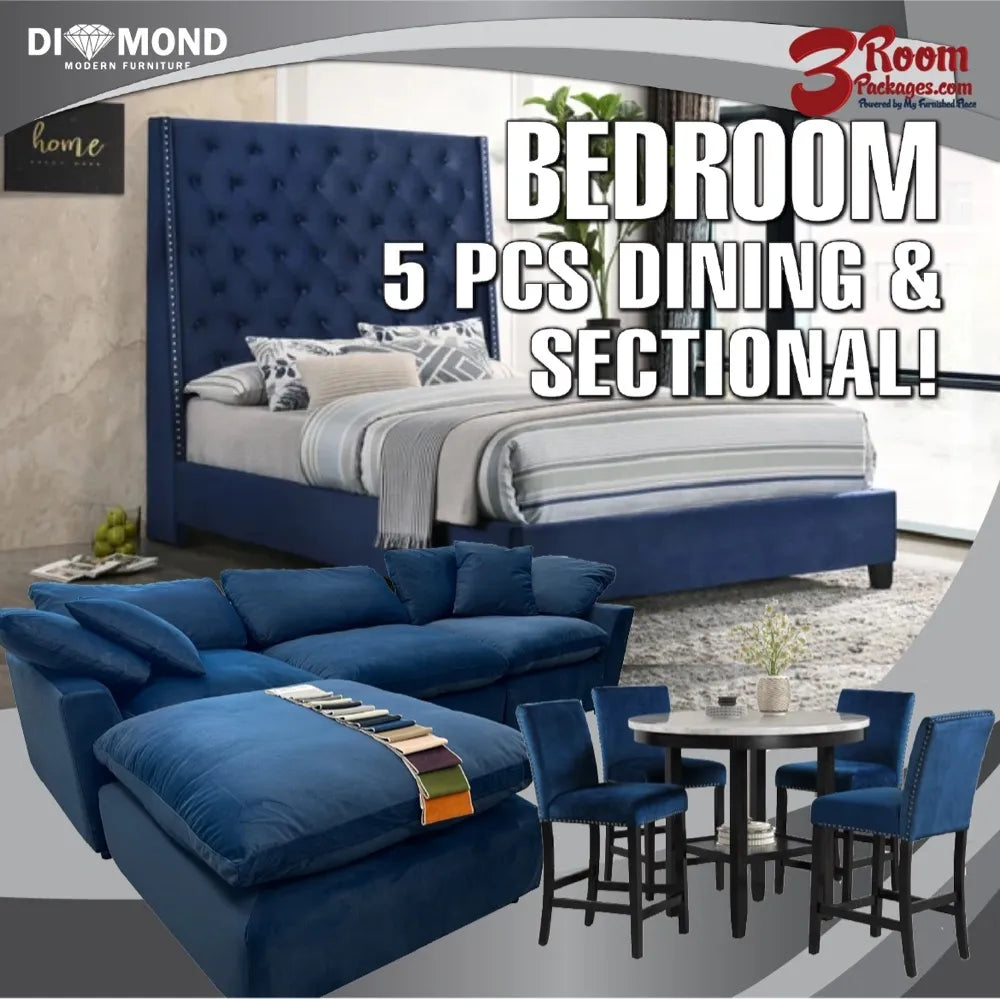 Indulge in the ultimate home transformation with our 3-room package. From the Luxury Cloud Velvet Sectional to the 6ft Bed Frame and the 5-piece Elegant Dining Set, each piece is carefully selected to bring comfort and elegance to your living space. And with the option to add the 3-piece Coffee Table Set, you can complete the look and create a harmonious ambiance in your home. Embrace the luxury and comfort of our curated collection and elevate your living experience to new heights.