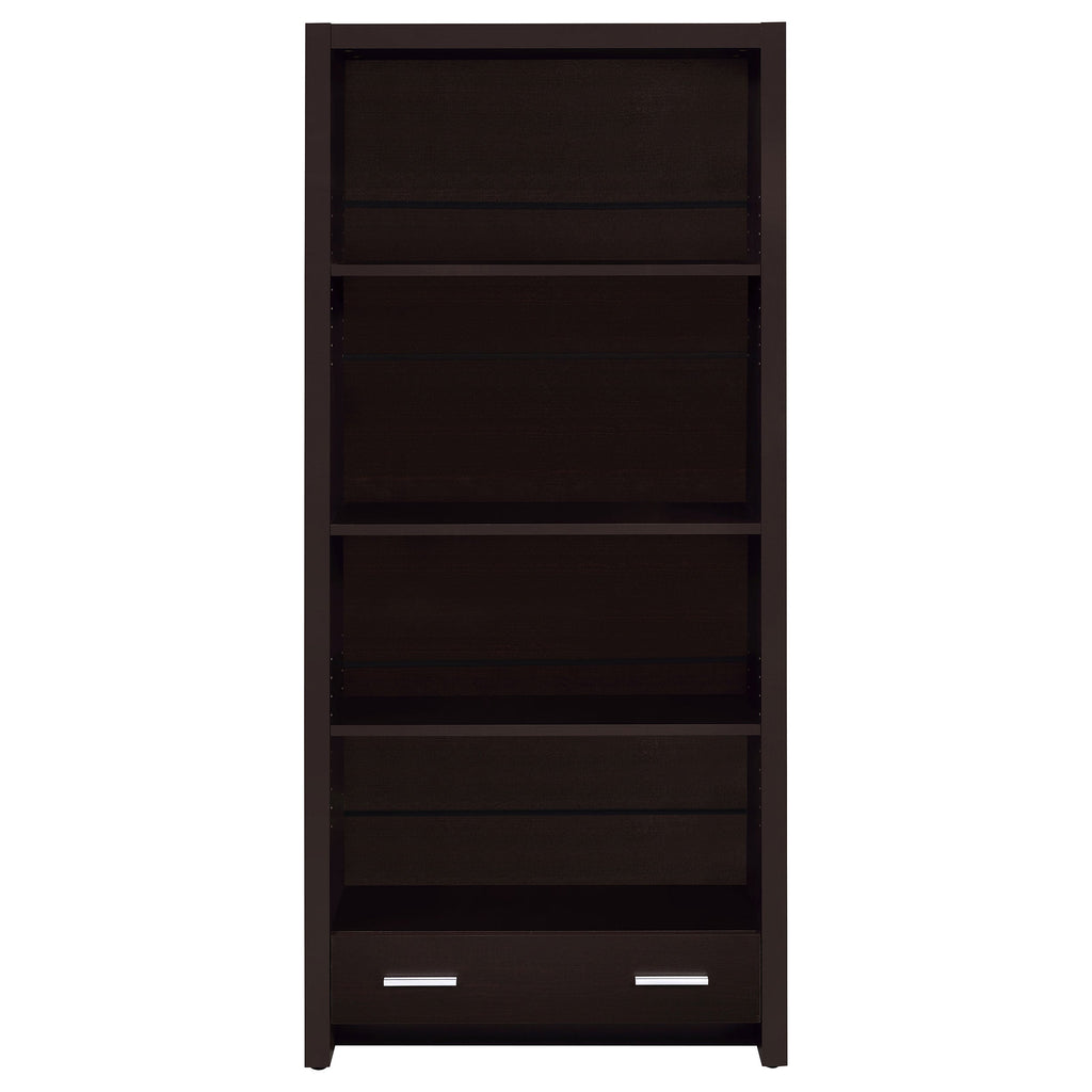 Make plenty of room for reading material. Designed to offer a modern look, this bookcase makes itself at home in an office environment or living space. Four shelves offer plenty of room for volumes of books, periodicals, and decor. Find hidden storage space in a single drawer below, with smooth-operating Euro glides. This tasteful bookcase is a perfect partner to an expanded desk set.
