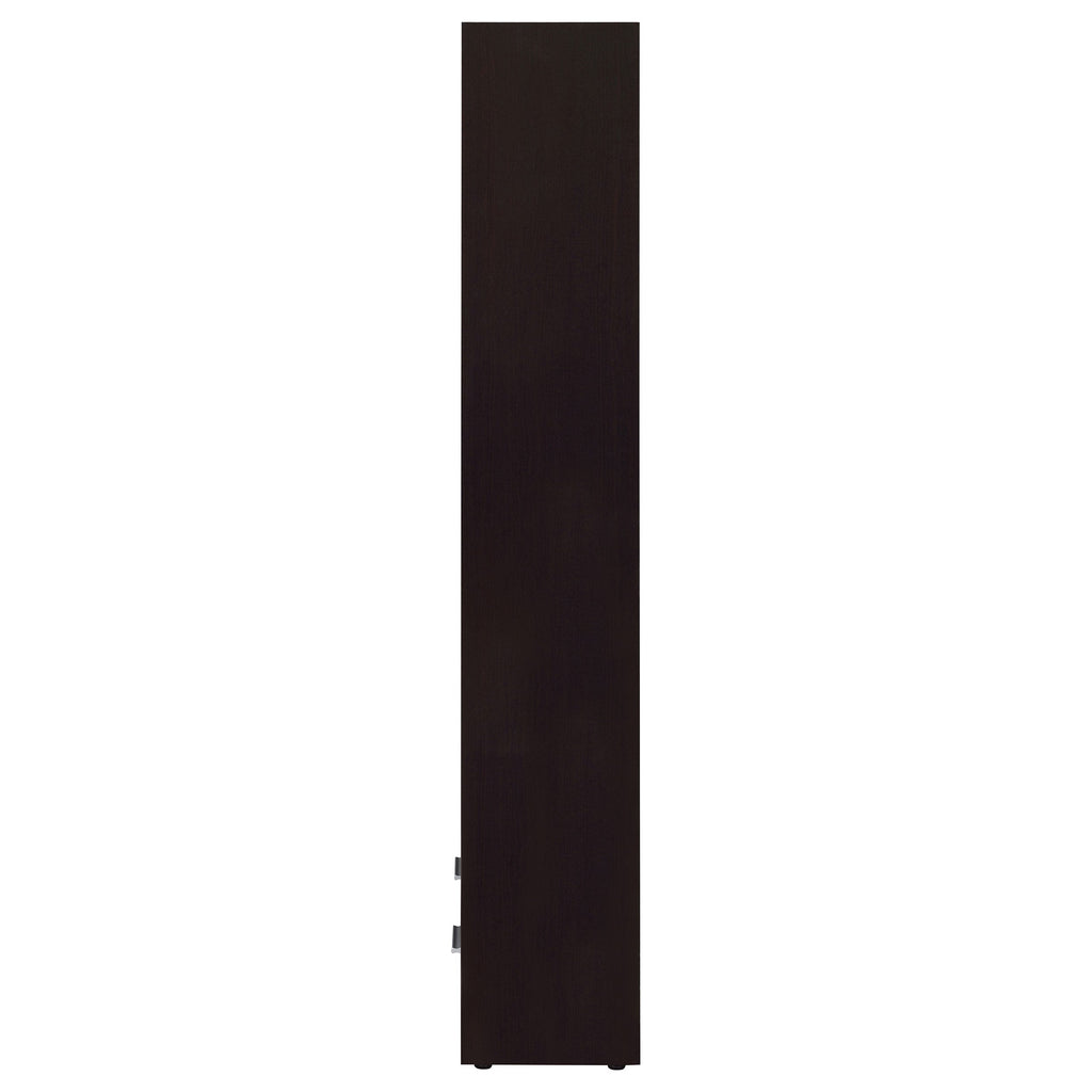 Classy modern bookcase in cappuccino finish displays subtle strength
