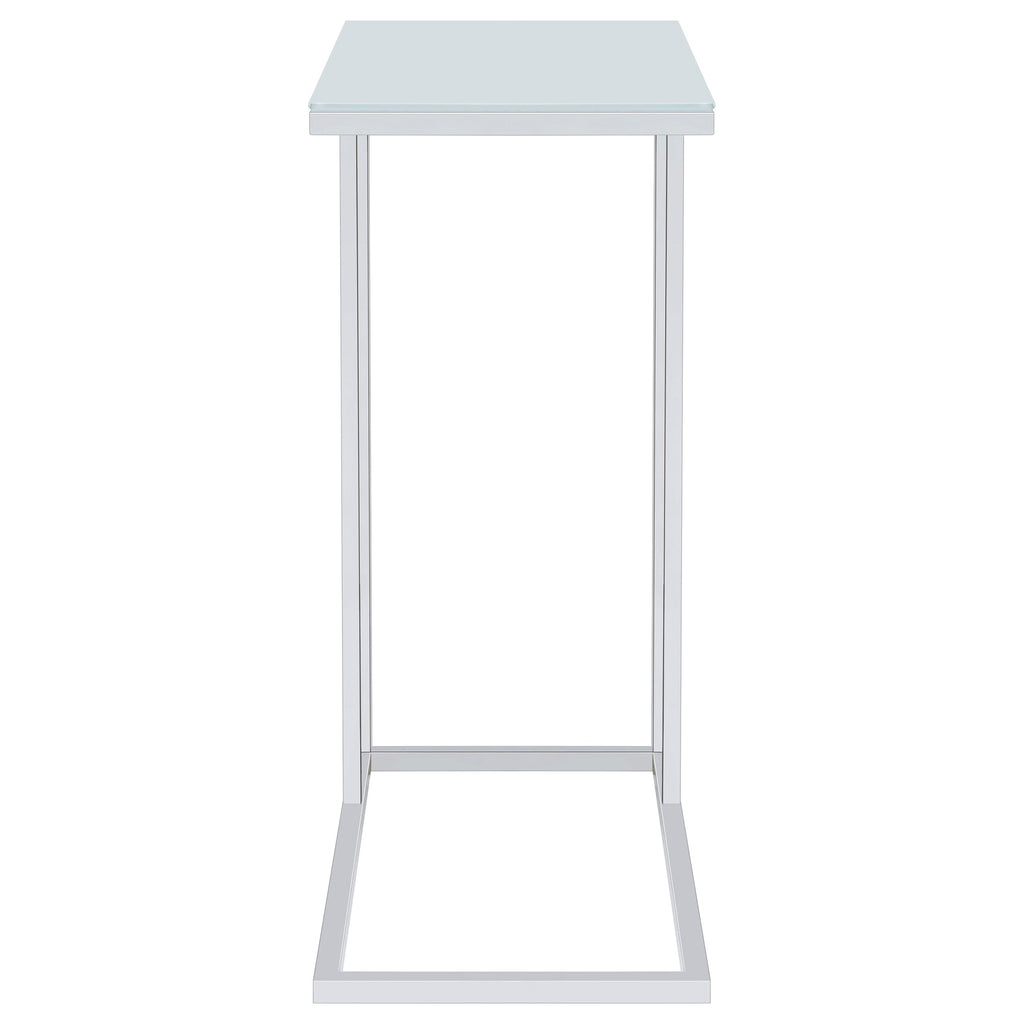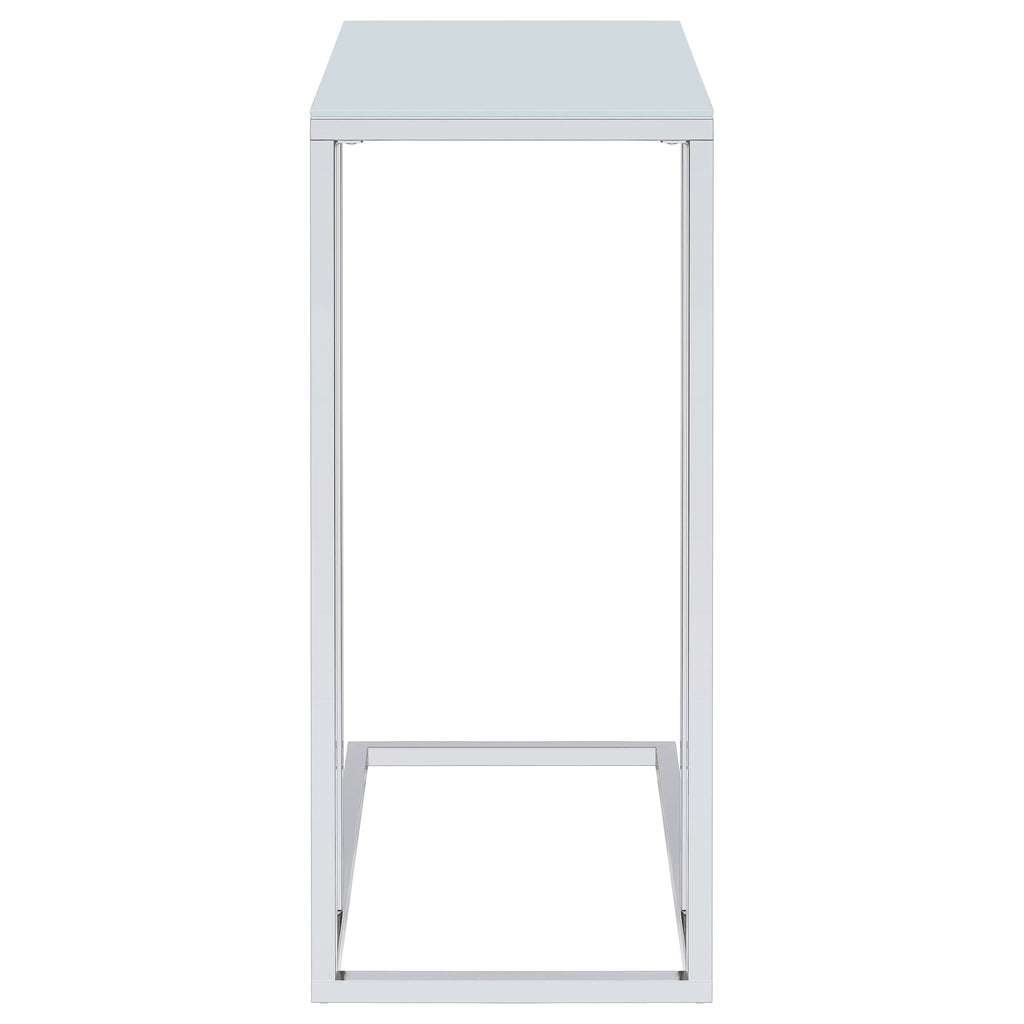 This side table features a stylish white glass top paired with a durable metal frame electroplated in chrome, offering a modern and sophisticated look. Perfect for use as a sofa table or accent piece, it provides a clean, minimalist design that complements any room. The sturdy metal frame ensures reliable support, while the white glass surface is easy to maintain, making this table a sleek and practical addition to your living space.