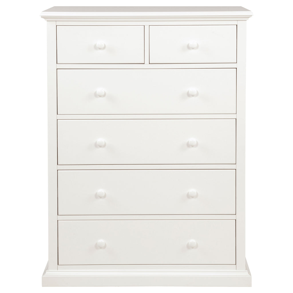 This elegant six-drawer chest combines practicality and style with its timeless design, perfect for bedrooms or guest spaces. Constructed from sturdy plywood and engineered wood with pine and pine veneer accents, this chest of drawers ensures durability and visual appeal. The six spacious drawers offer convenient storage, while the minimalist round knobs and clean lines enhance its sleek silhouette. Its compact design is ideal for organizing essentials without occupying excessive space.