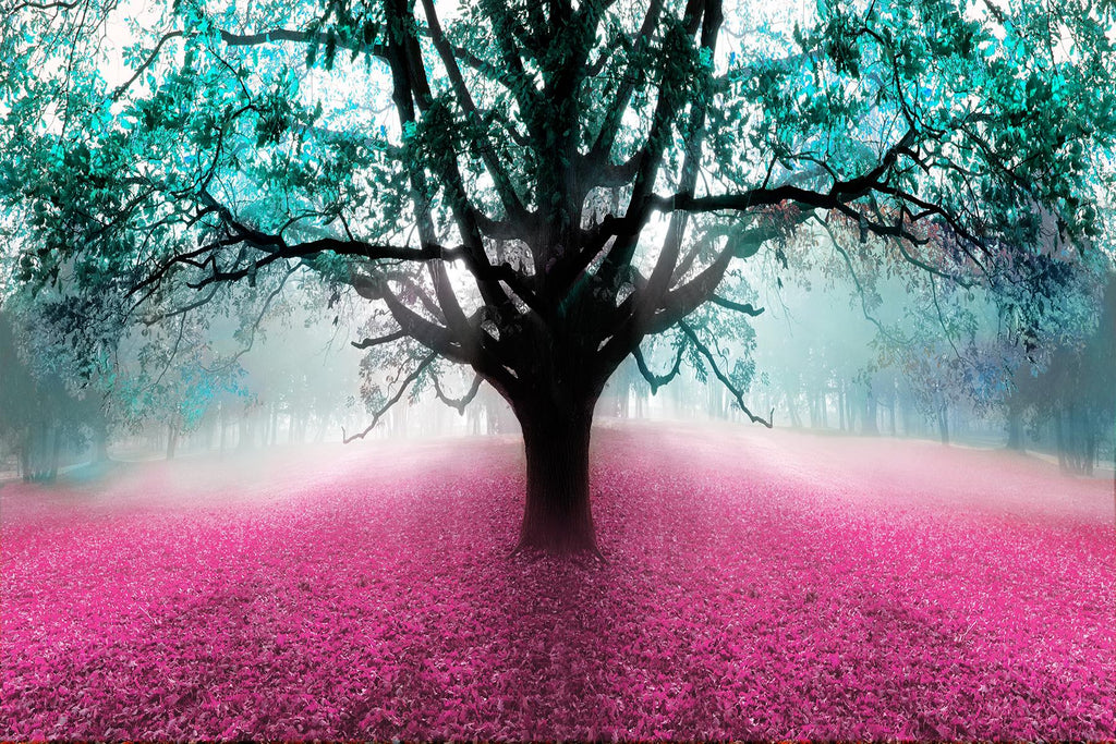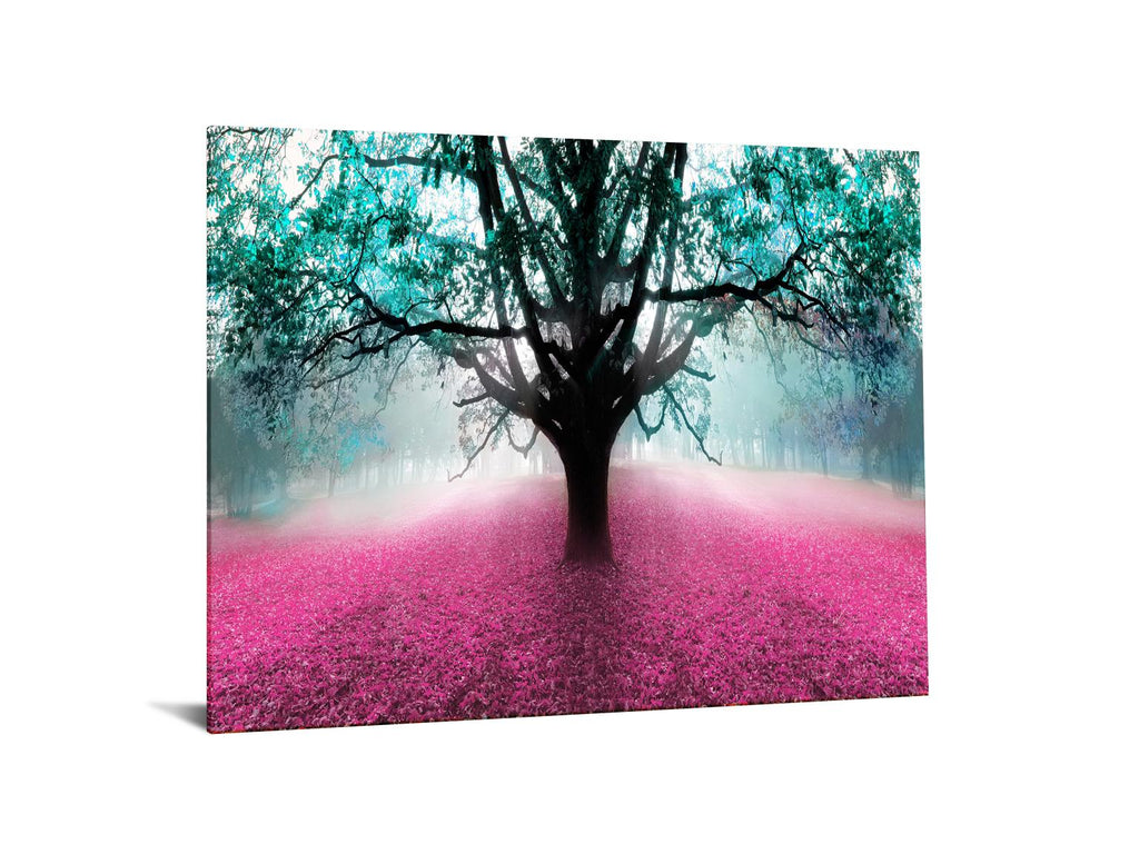 Temp Glass W/Foil - Green Tree W/Pink Leaves Tempered Glass