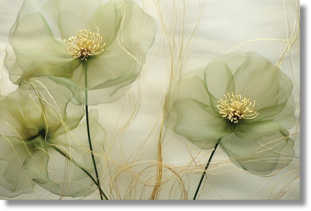 Temp Glass W/ Foil - Green Whispy Floral Tempered Glass