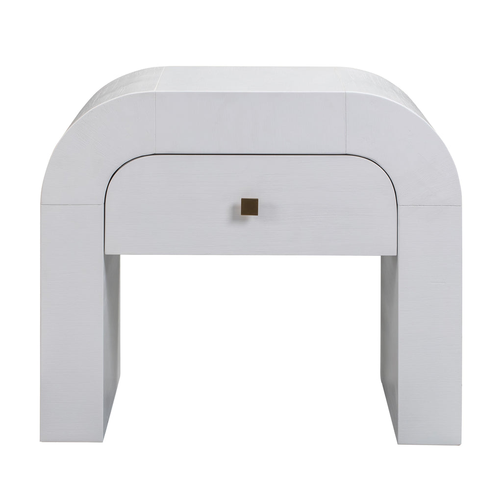 A white acacia finish provides neutral tones