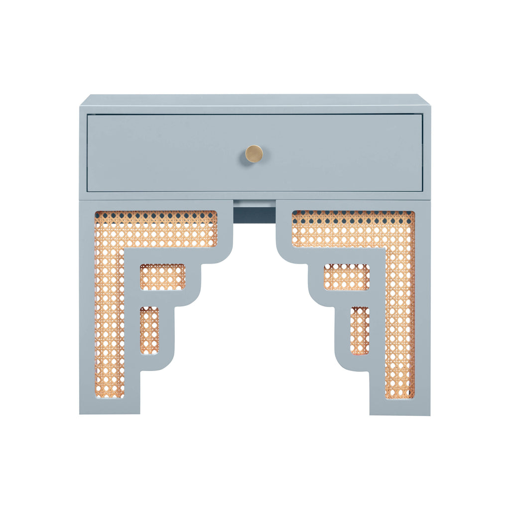 Suzie Pastel Blue & Rattan Nightstand - UK