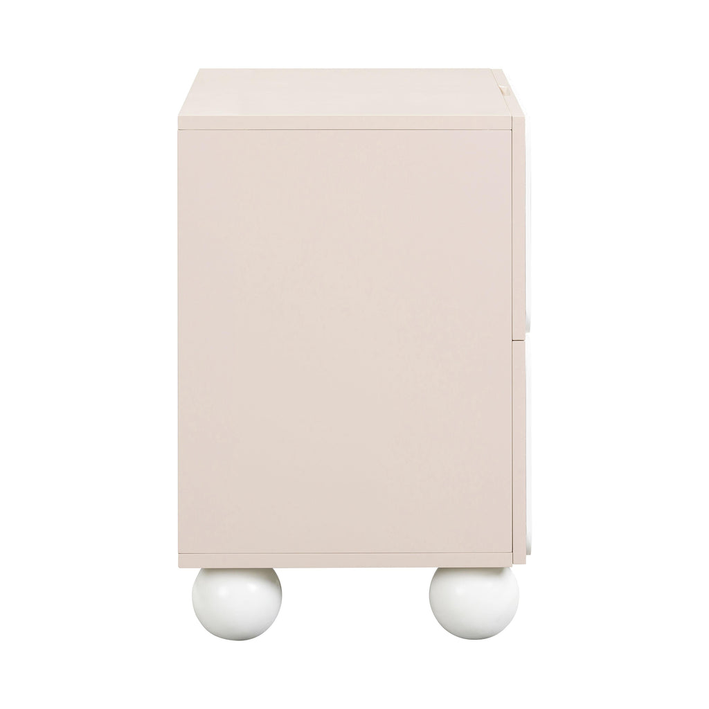 Say goodbye to a boring bedtime routine with the Tori Motif Nightstand, available in dreamy mauve and sophisticated taupe, each featuring a statement-making facade that truly pops. Its solid wood, spherical legs infuse a sculptural Hollywood buzz, while the medium sheen on the surfaces delivers just the right amount of drama without fussy maintenance. Plus, the nightstand's drawers glide smoothly on soft-close rails, ensuring you keep the morning peace, not waking your partner as you start your day.