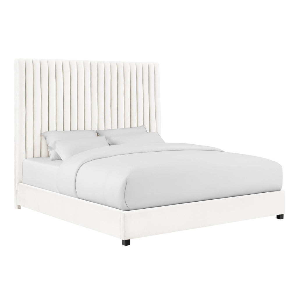 Yes, taller is better. We've reached a whole new level with the Arabelle bed and its impressive stately, channel-tufted frame. Completing the look, we upholstered this dreamy piece with trending velvet upholstery in gorgeous color options. Available in king and super king.