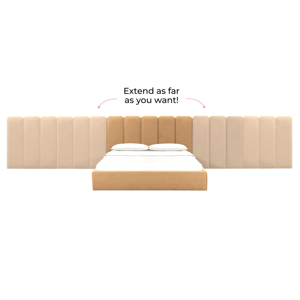 Look no further for the perfect bed! The Palani collection's chic and contemporary design effortlessly combines style and customization. The trending upholstered channels provide comfort and chic-af energy. The standout feature is Palani's customizable design, allowing you to add as many panels as desired, giving it a bespoke look tailored to your taste. Available in a range of versatile colors and fabric options, the Palani Bed Collection offers endless possibilities to create the perfect centerpiece for your dream bedroom.