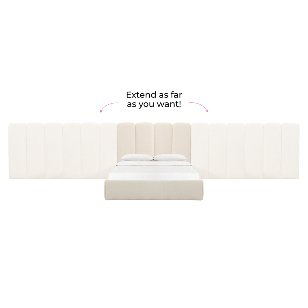 Look no further for the perfect bed! The Palani collection's chic and contemporary design effortlessly combines style and customization. The trending upholstered channels provide comfort and chic-af energy. The standout feature is Palani's customizable design, allowing you to add as many panels as desired, giving it a bespoke look tailored to your taste. Available in a range of versatile colors and fabric options, the Palani Bed Collection offers endless possibilities to create the perfect centerpiece for your dream bedroom.