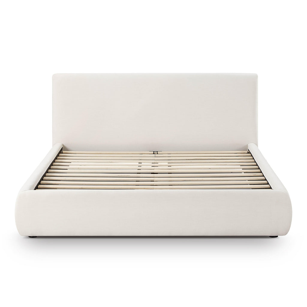 Indulge in the luxurious comfort of the Isla Bed, available in king or queen sizes and designed to elevate your sanctuary. Choose between cream upcycled linen, a cream jacquard, or textured velvet in black or taupe. Its elegantly rounded rails and footboard, along with mitered corners, create a soft, inviting silhouette. The plush headboard invites you to lean back and unwind, making the Isla Bed the perfect haven for restful nights and dreamy mornings.