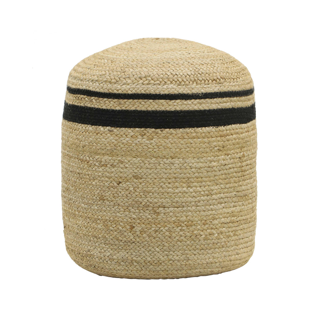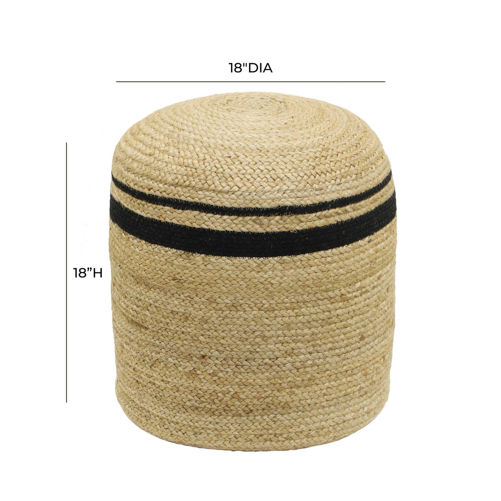 Introducing the Emerge Round Pouf is a versatile and natural addition to your home decor. This pouf is handcrafted from high-quality jute and soft cotton with a chic black striping accent. Add this item to any space to bring in a natural and modern touch!