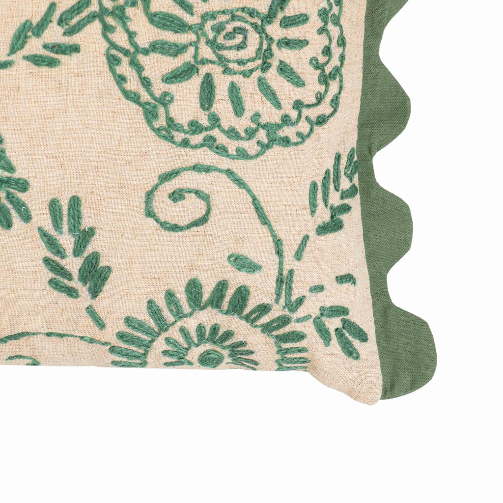 The Portia Embroidered Cotton Flex Accent Cushion brings an eye-catching element to your space, available in vibrant orange or soothing aqua. With intricate floral motifs and a whimsical scalloped trim, this natural fiber cushion adds a touch of artisanal beauty to any room. Plus, its plush design needs no filler, making it as effortless as it is stylish.