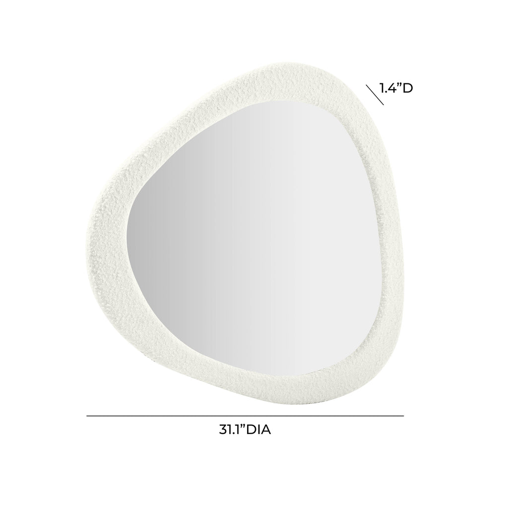 The Klaryss Boucle Mirror embraces the current craze for amorphous natural sculpted aesthetics, making it a must-have statement piece. Available in both irregular and teardrop shapes, this mirror pairs perfectly with a touch of avant-garde flair. Add to the mix the textured nubby boucle fabric, and you've got a mirror that not only reflects but sets a super trendy tone in any space.