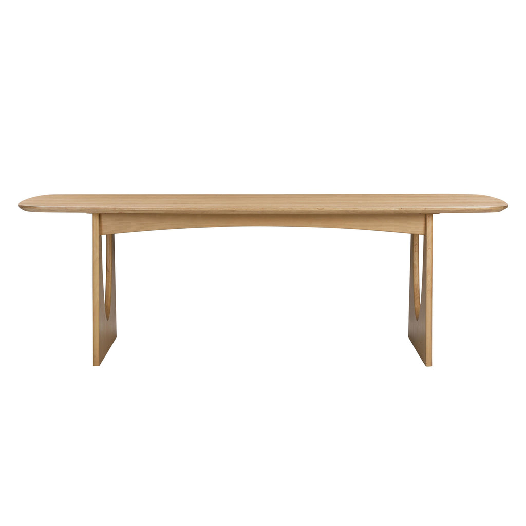 Introducing the Cybill Natural Ash Dining Table, a stunning piece that combines modern design with the laid-back Miami vibe. Crafted from natural ash wood, this dining table exudes warmth and sophistication. At 94" long, this table can comfortably seat your family and friends and is the perfect centerpiece for your dining room.