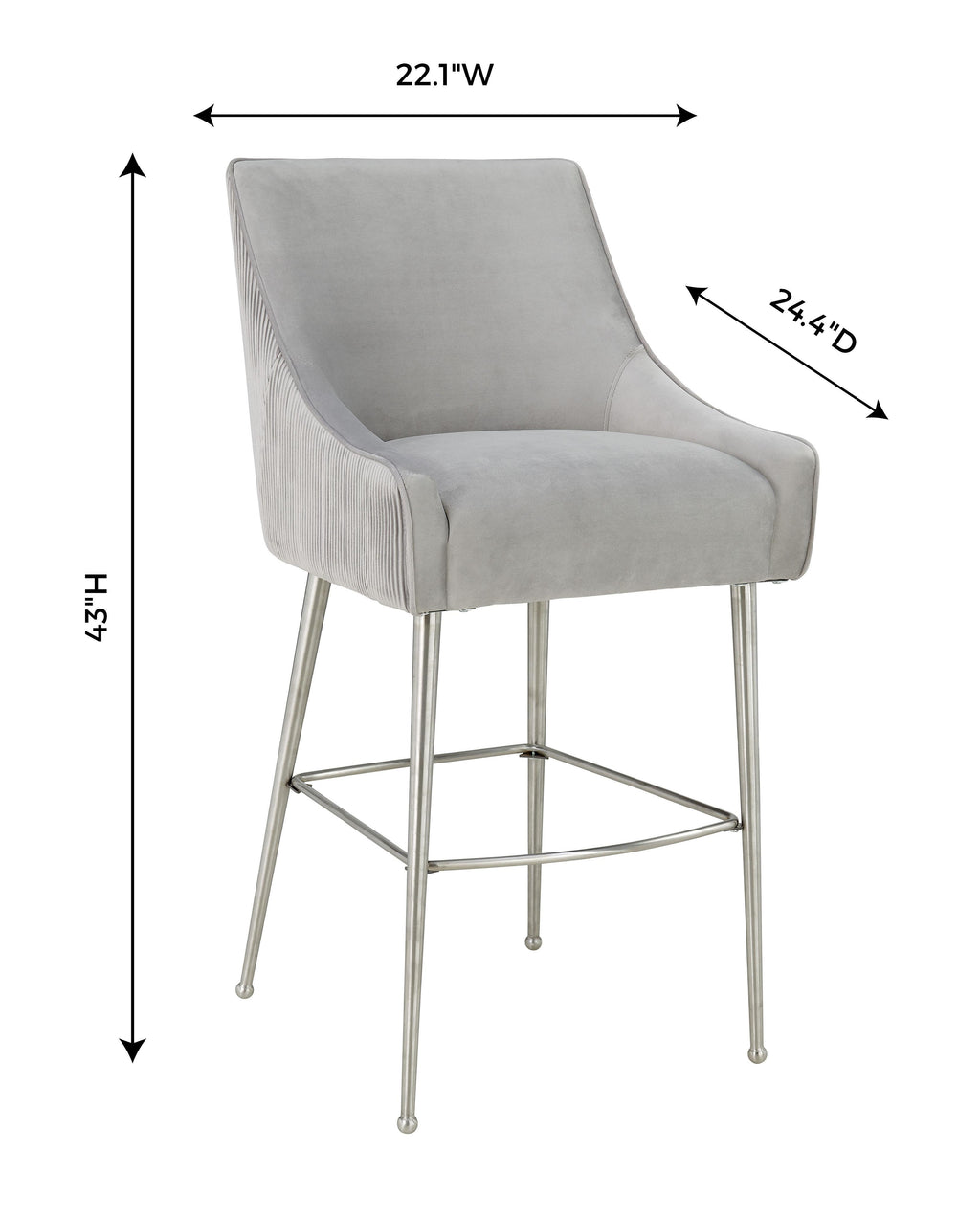 Sit pretty in this sumptuous yet durable velvet Stool. The Beatrix dazzles in counter and bar heights. Available in soft velvet with fab stainless steel legs and a matching handle on the back. Prop it into any room for a luxe, glamour effect.