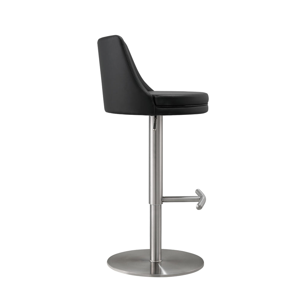 Reagan Black Performance Vegan Leather and Silver Adjustable Stool