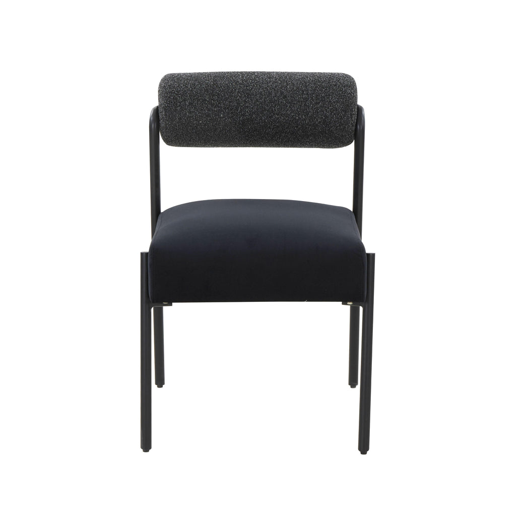 Dining just became a whole lot more exciting with the funky and bold Jolene dining. This unique chair is crafted from pine wood and wrapped in sumptuous velvet or linen fabric, with iron legs in contrasting color to add a sense of abstraction. Available in multiple colors to suit your design aesthetic.