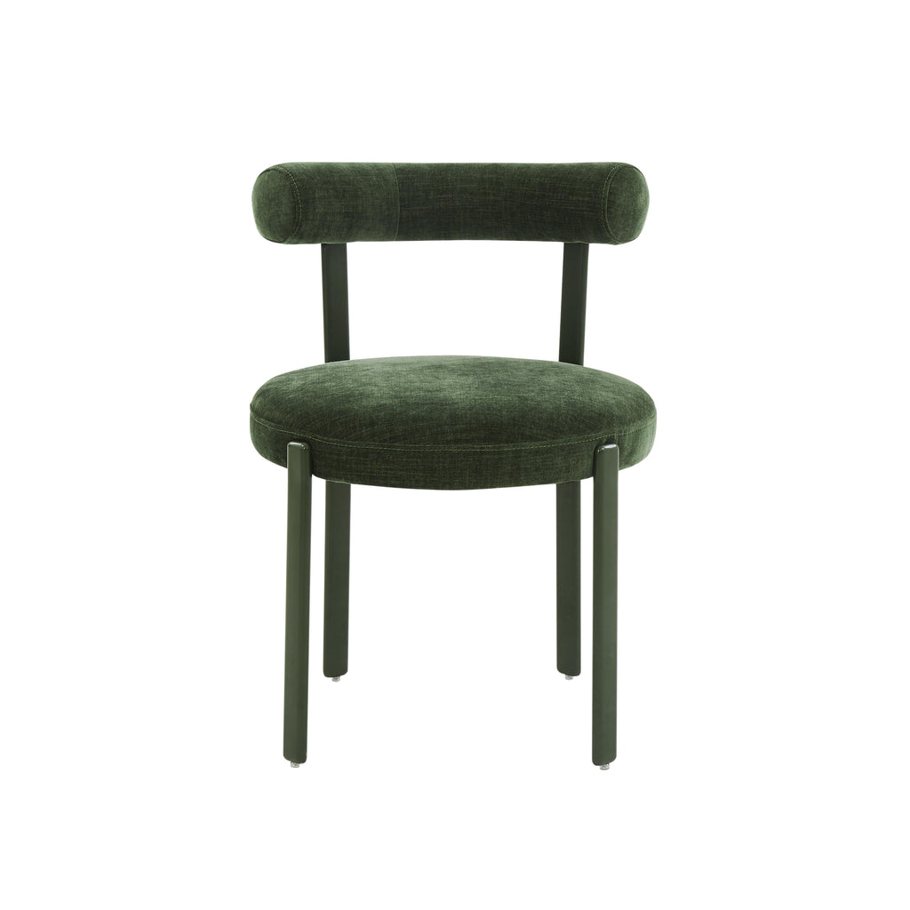 Meet Margaret! She's the perfect embodiment of sculptural design and retro-Memphis style. This stunning chair is expertly crafted to bring a modern pop to any dining space.The backrest and seat are upholstered in a soft fabric that adds a touch of luxury and texture to the overall design. The comfortable seat cushion provides support and comfort, making it perfect for long dinner parties and gatherings.