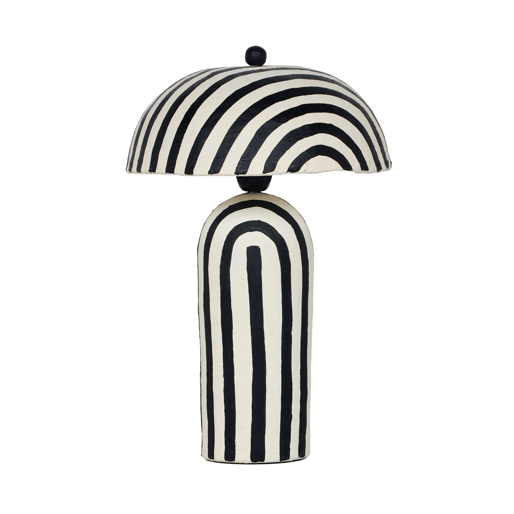 Illuminate your space with the charming Maiori Striped Papier Mache Table Lamp, featuring a beautiful, bold silhouette crafted from innovative paper mache construction. The lamp's punchy stripes add a playful touch, complemented by a domed lampshade and an adorable orb finial. Available in several color options, this lamp effortlessly adds striking personality to any space, making it a delightful and stylish accent for your home.