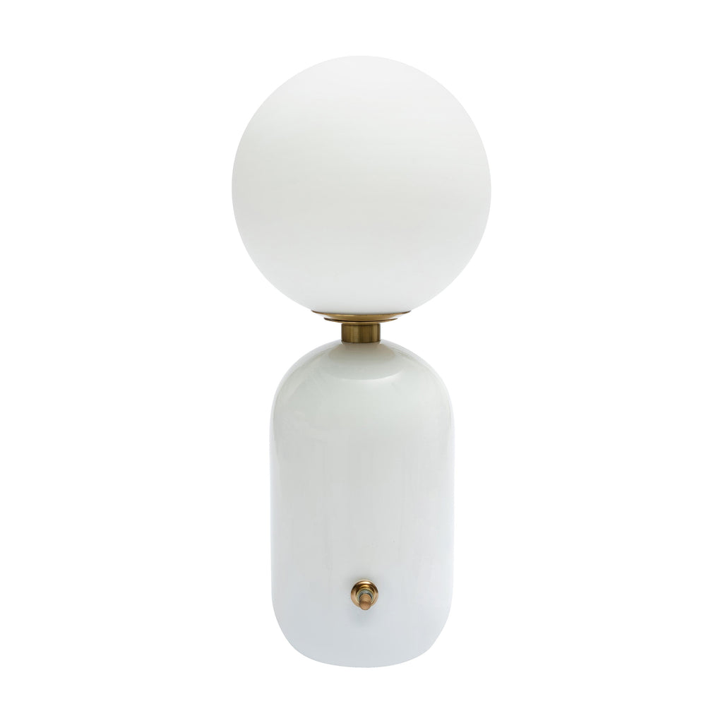 Introducing the Liza Table Lamp, a modern essential available in sleek black or timeless white. With a glossy lacquer finish on metal, a frosted glass globe emitting a warm light, and a felted base ensuring furniture-friendly placement, this lamp seamlessly combines style and function. Its versatile design makes it a perfect addition to any aesthetic.