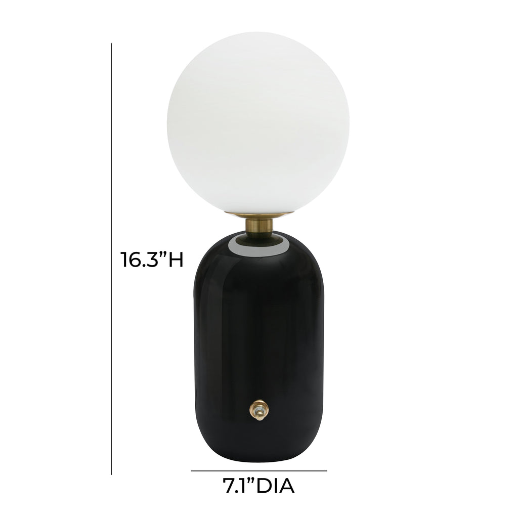 Introducing the Liza Table Lamp, a modern essential available in sleek black or timeless white. With a glossy lacquer finish on metal, a frosted glass globe emitting a warm light, and a felted base ensuring furniture-friendly placement, this lamp seamlessly combines style and function. Its versatile design makes it a perfect addition to any aesthetic.