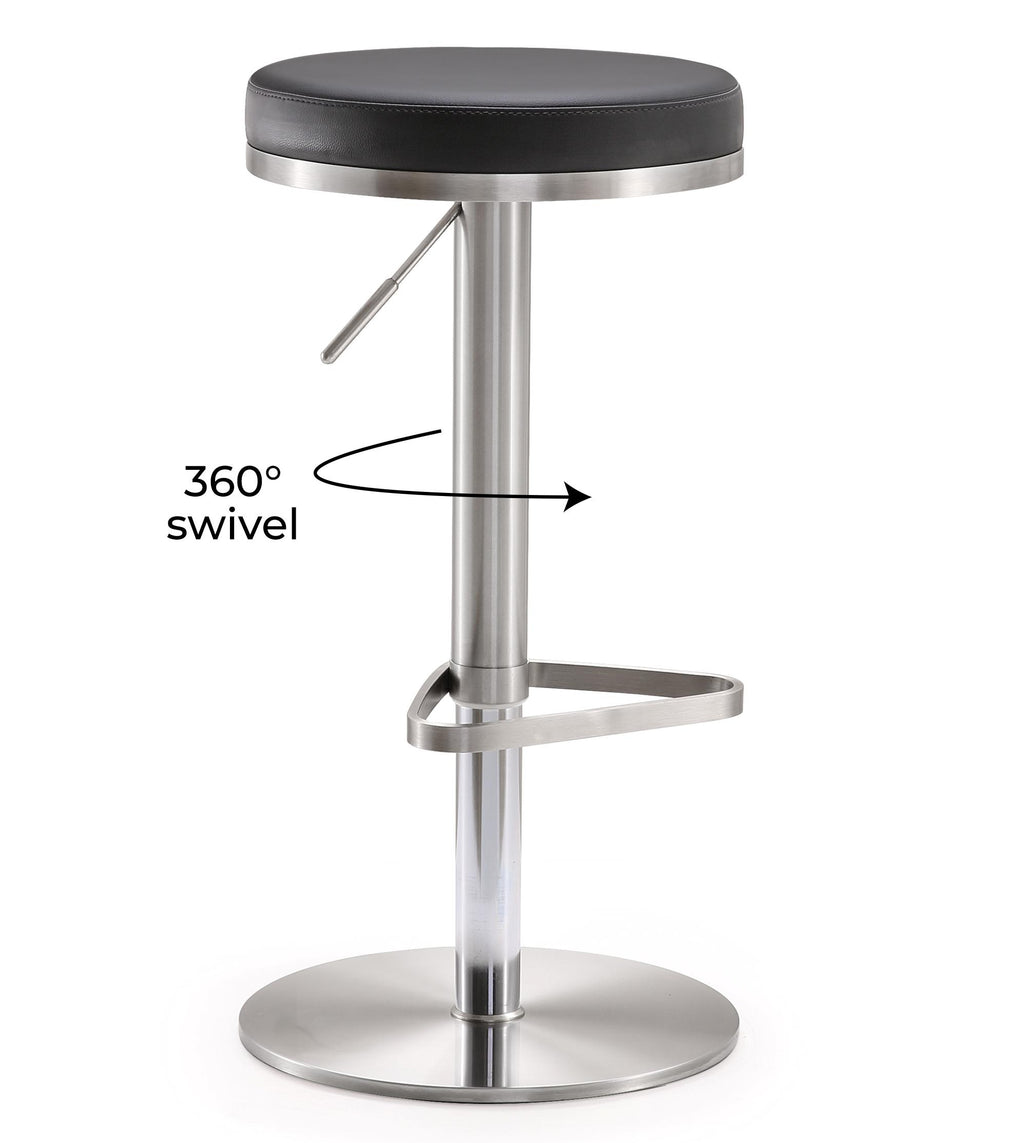 Fano Black Performance Vegan Leather and Stainless Steel Adjustable Barstool