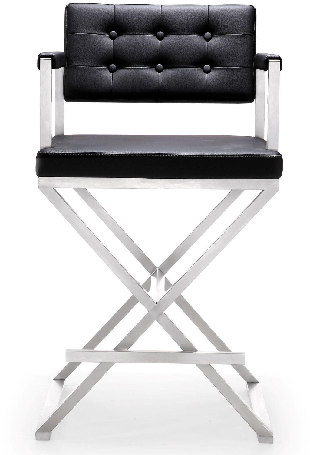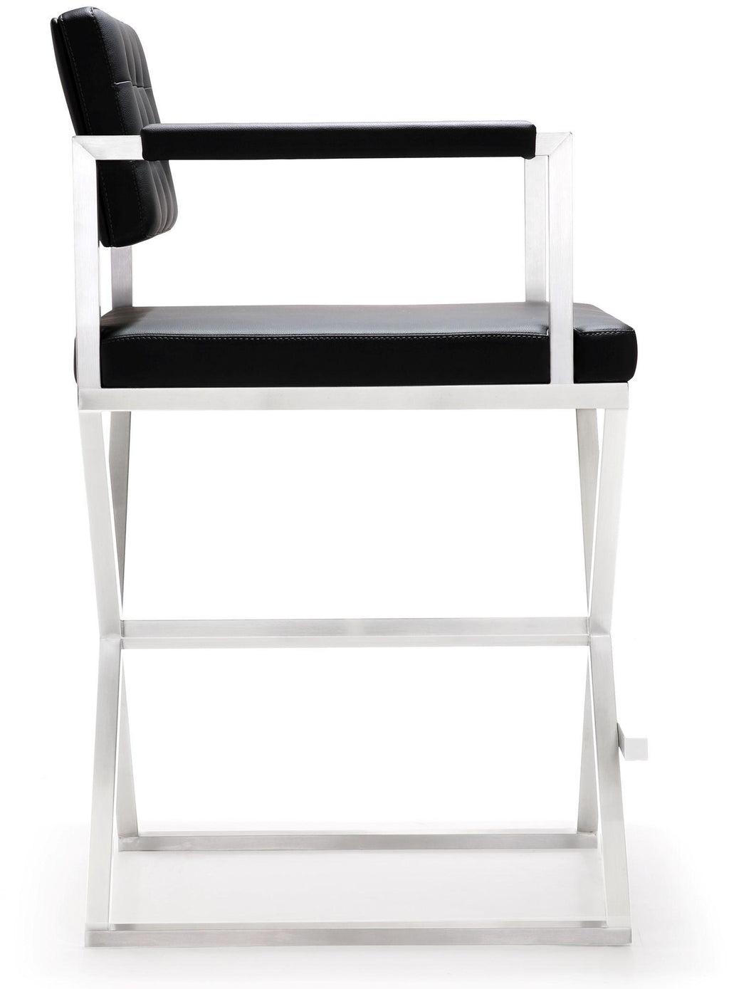 Director Black Performance Vegan Leather and Stainless Steel Counter Stool