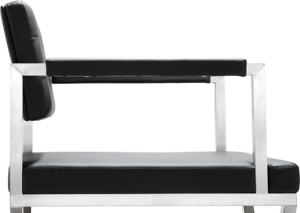 Furnish your kitchen or bar area in contemporary style with the Director stool from TOV. The solid stainless steel frame provides a sturdy base, while the plush extra deep seat and footrest ensure maximum comfort. The combination of angles and gentle curves gives this stool an eye-catching appearance, while the neutral color allows it to match well with any decor.