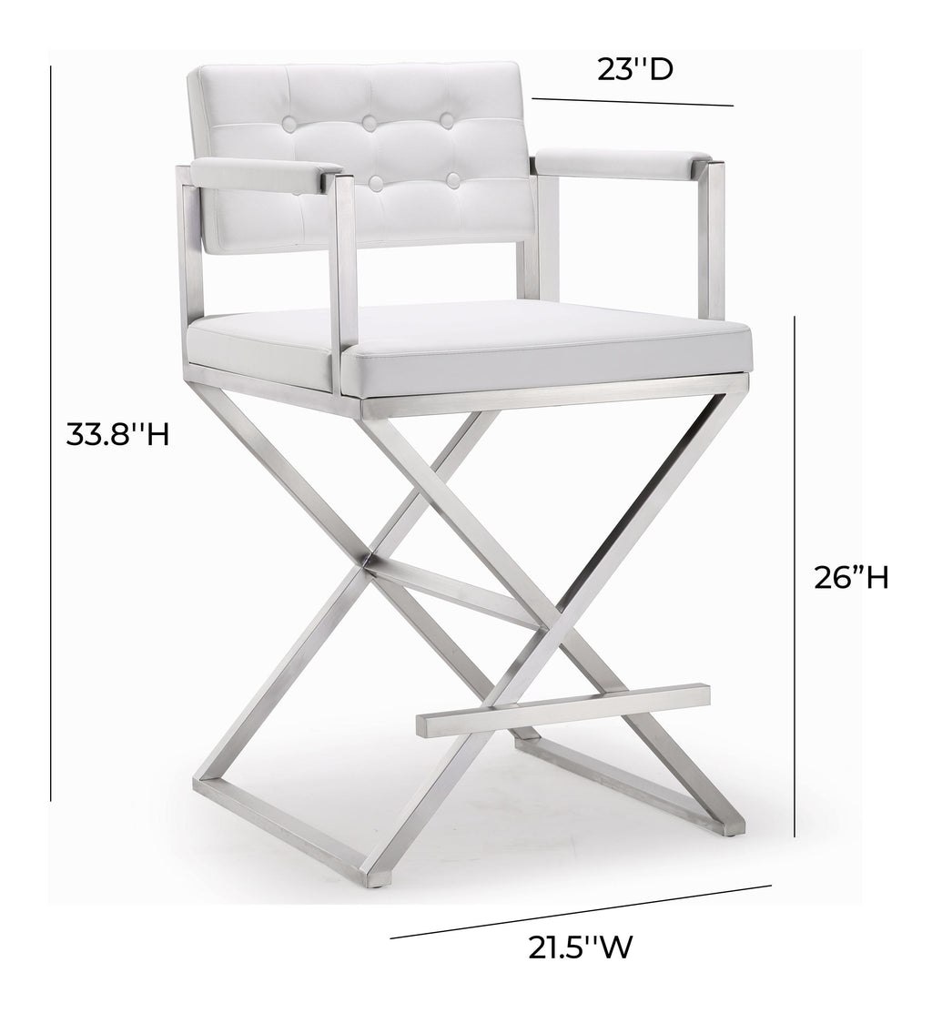 Furnish your kitchen or bar area in contemporary style with the Director stool from TOV. The solid stainless steel frame provides a sturdy base, while the plush extra deep seat and footrest ensure maximum comfort. The combination of angles and gentle curves gives this stool an eye-catching appearance, while the neutral color allows it to match well with any decor.