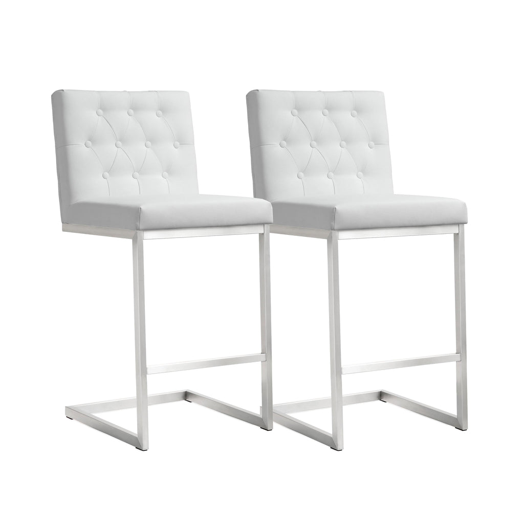 Furnish your kitchen or bar area in contemporary style with the Helsinki counter stool from TOV. The solid stainless steel frame provides a sturdy base, while the plush seat and footrest ensure maximum comfort. The combination of angles and gentle curves gives this stool an eye-catching appearance, while the neutral color allows it to match well with any decor.