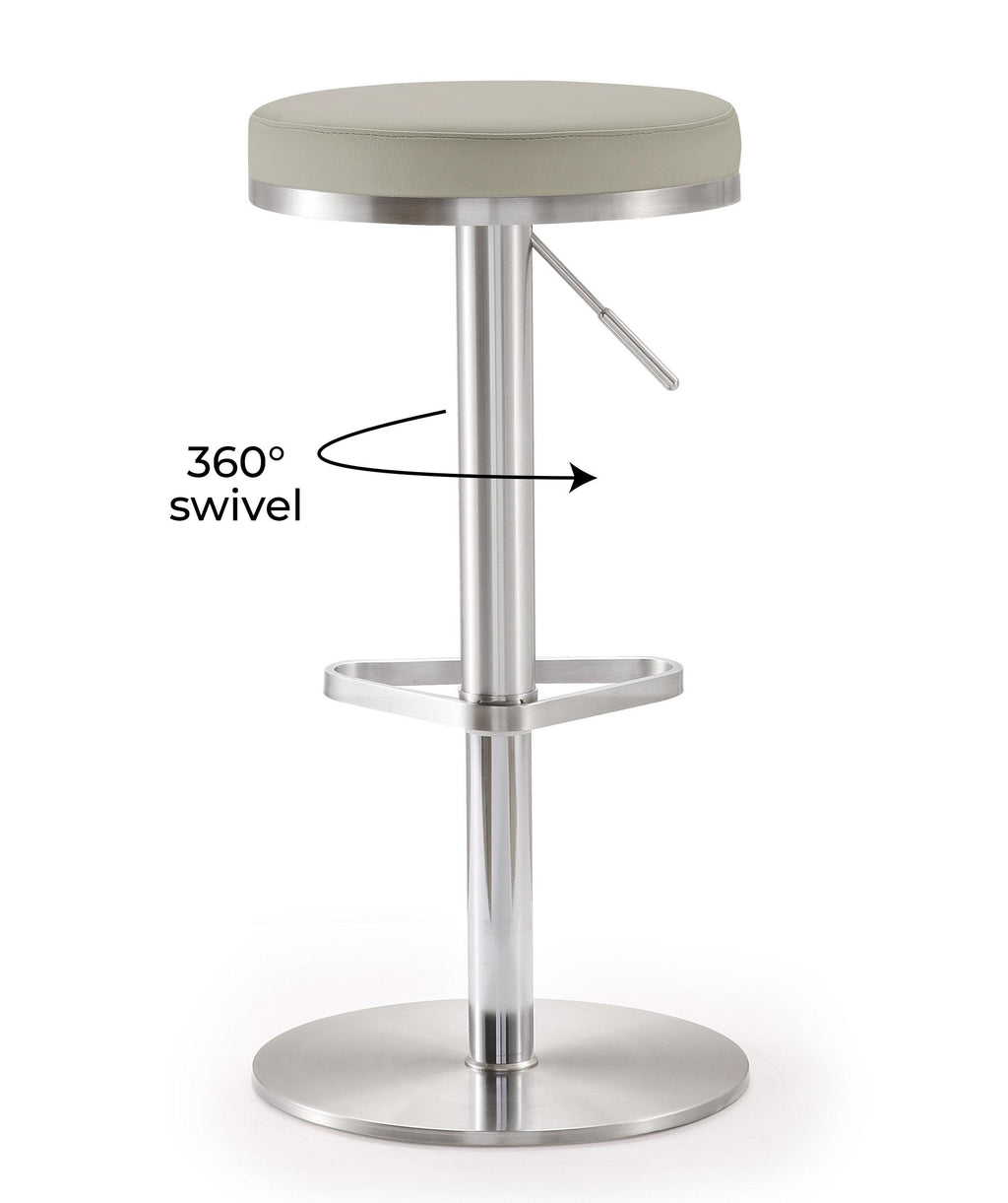 Furnish your kitchen or bar area in contemporary style with the Fano stool from TOV. The solid stainless steel frame provides a sturdy base, while the plush seat and footrest ensure maximum comfort. The combination of angles and gentle curves gives this stool an eye-catching appearance, while the neutral color allows it to match well with any decor.