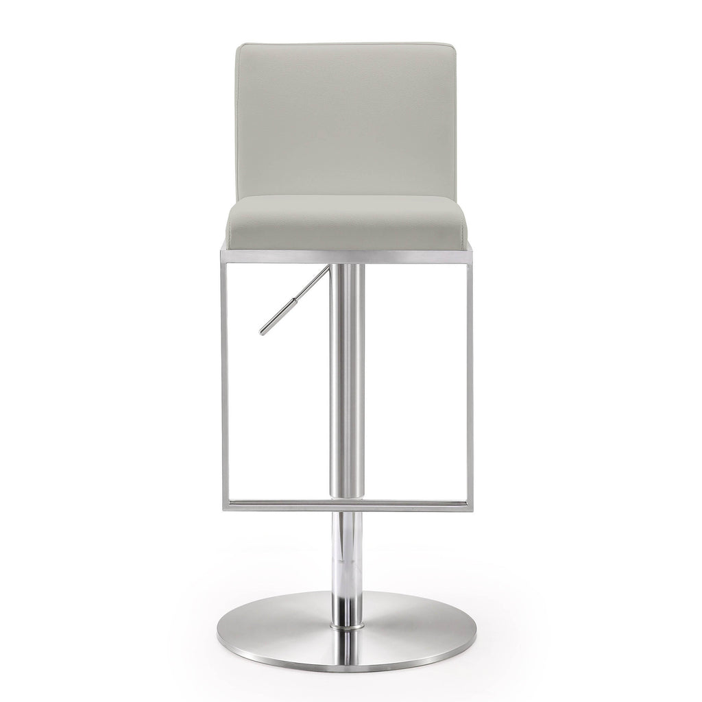 Furnish your kitchen or bar area in contemporary style with the Amalfi stool from TOV. The solid stainless steel frame provides a sturdy base, while the plush seat and footrest ensure maximum comfort. The combination of angles and gentle curves gives this stool an eye-catching appearance, while the neutral color allows it to match well with any decor.