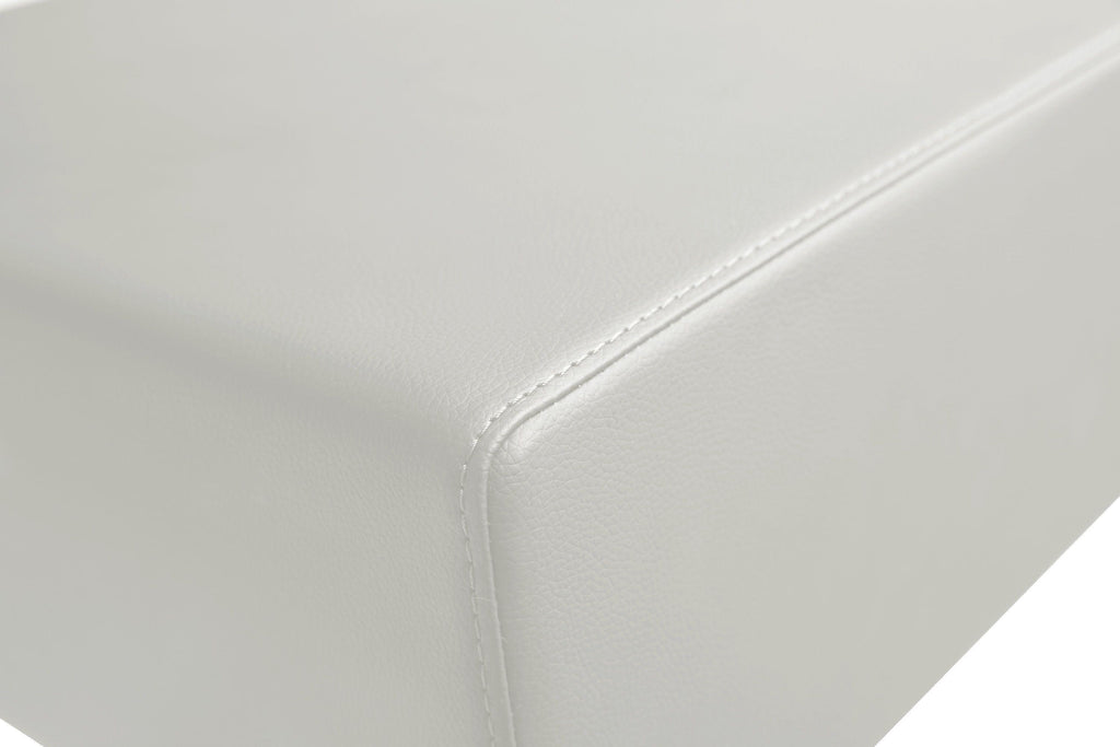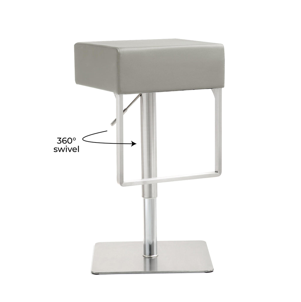 Furnish your kitchen or bar area in contemporary style with the Seville stool from TOV. The solid stainless steel frame provides a sturdy base, while the extra plush seat and footrest ensure maximum comfort. The combination of angles and gentle curves gives this stool an eye-catching appearance, while the neutral color allows it to match well with any decor.