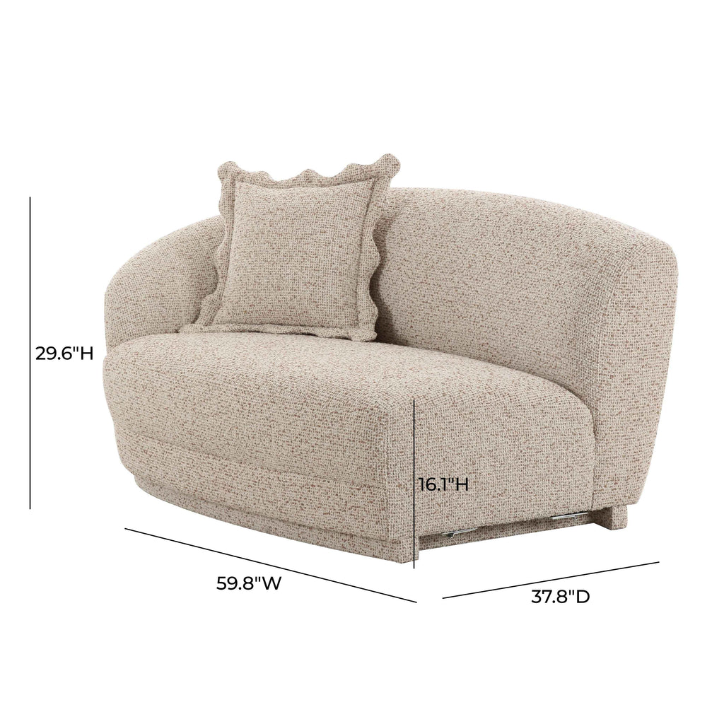 Introducing the Marion Two-Tone Textured Boucle Sectional, designed to shine from every angle; perfect for open living rooms where every side counts, even the back. Its playful, angled silhouette comes in two or three pieces, bringing both comfort and charm to your space. With graceful arched details and whimsical pillows, Marion is the must-have statement piece of the season.