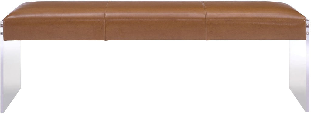 The Envy Leather Bench exudes modern design and appeal. The clear acrylic legs offer a dramatic look to the simple shape, while the plush seat is upholstered in a soft bonded leather. This is a must have if you are looking to add eye catching style to any space.