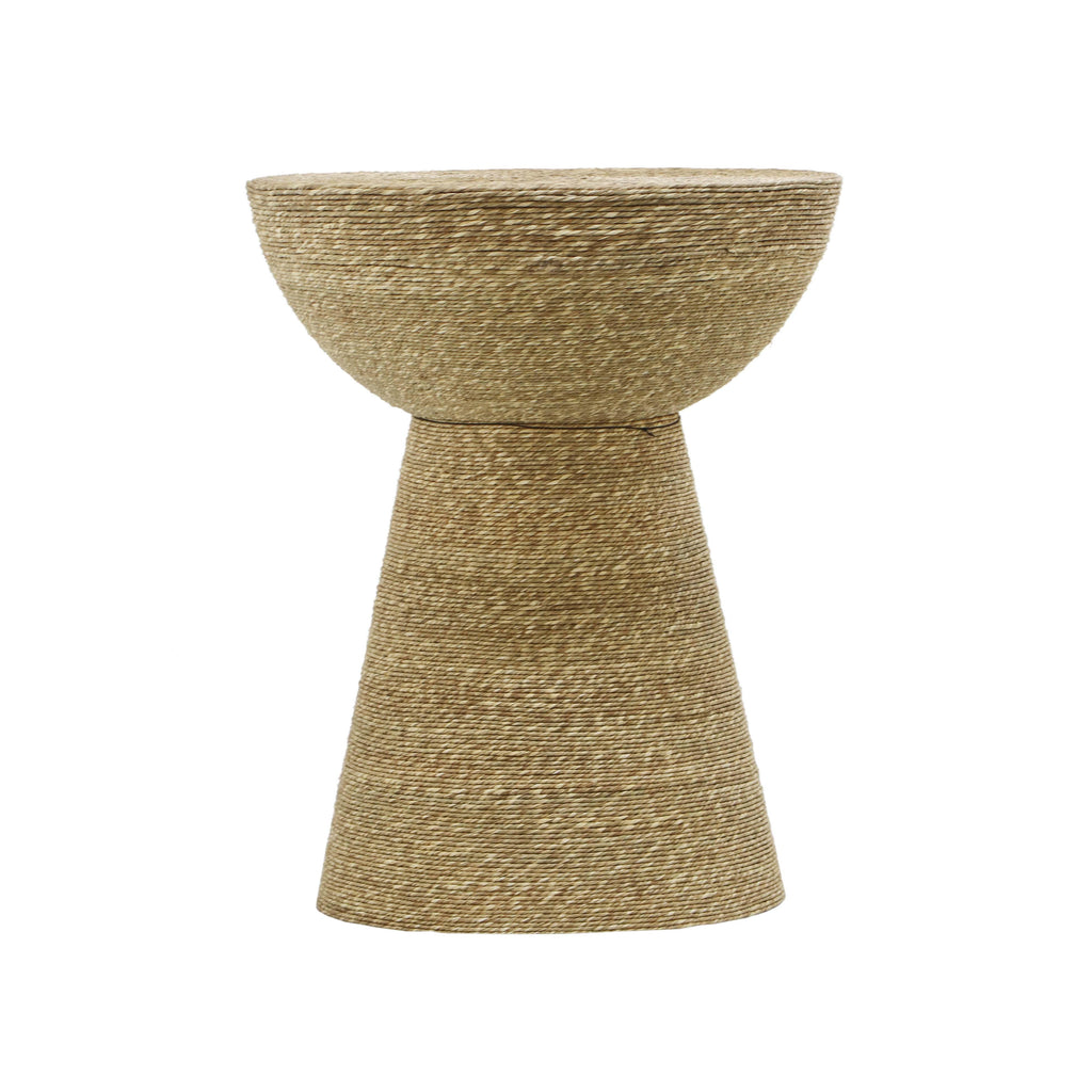 Handmade with care, the Wren Seagrass Side Table showcases beautiful natural craftsmanship! The table base is made of iron wrapped in cotton and natural grass to create an organic and nautical touch in your space. The compact size makes it the perfect side table in your living room, or a small bedside table, or the perfect spot to place a decor piece or plant.