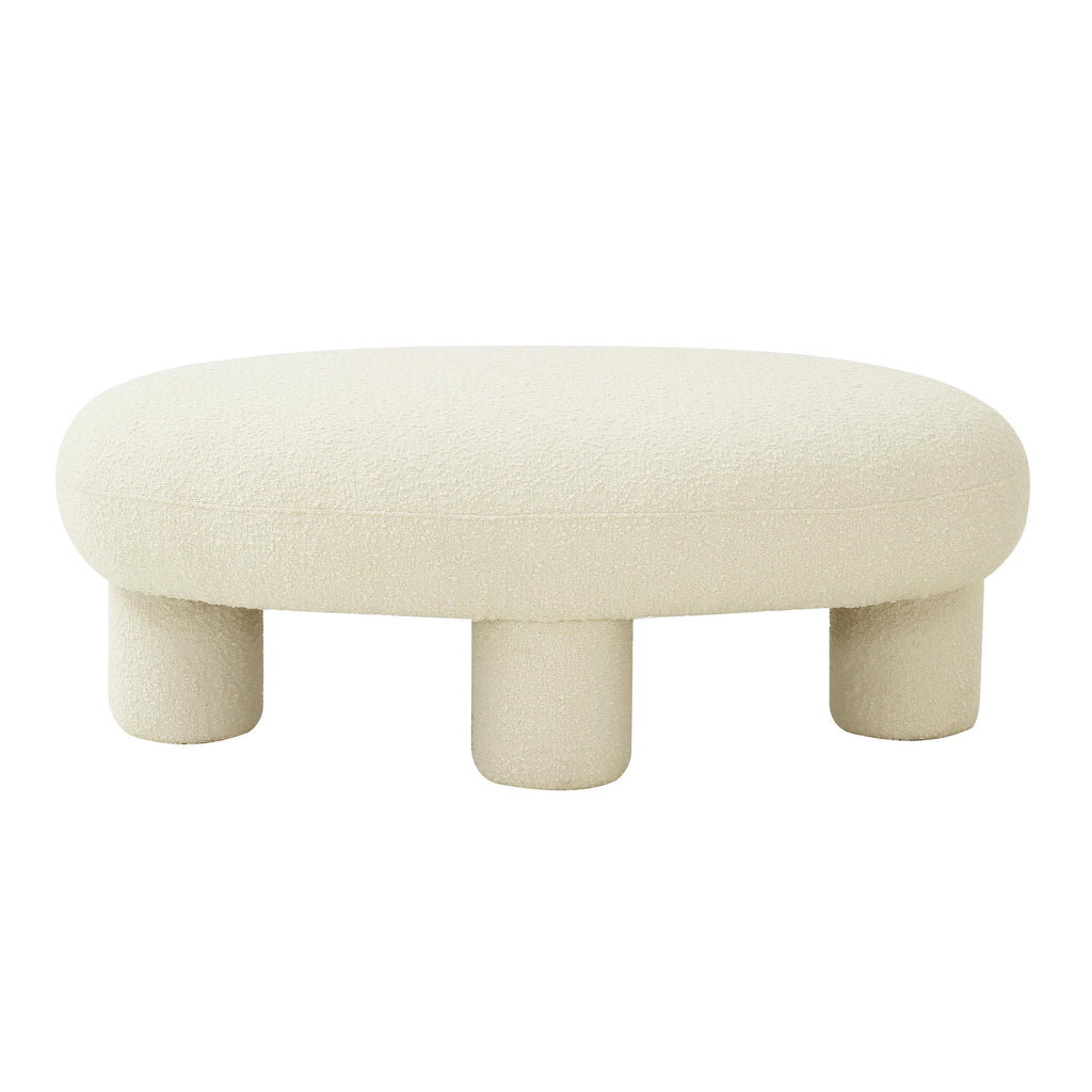 Trendy and chic, this ottoman is all the rage! This stylish piece features a fully upholstered kiln-dried pine frame and is perfect to use as a footrest, coffee table or an extra seat. Complement your living room with this one of a kind cozy textured boucle ottoman.