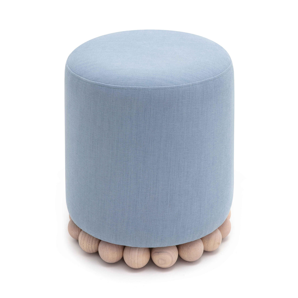 Introducing the Dex Ottomans, a charming and whimsical addition to your space that beautifully blends fresh design with a vibrant tropical vibe. The solid wood spherical orbs at the base create a striking visual element, ensuring a sturdy yet stylish foundation. Choose from playful washed linen-style cabana stripes, eco-friendly upcycled fabric, or bold leopard print jacquard to infuse personality into any room. Perfect for extra seating or as a chic footrest, these ottomans are available in a delightful palette of beige or pastel blue linen, faded blue or cream upcycled fabric, and taupe or olive green leopard prints. Transform your space with a touch of fun and flair!