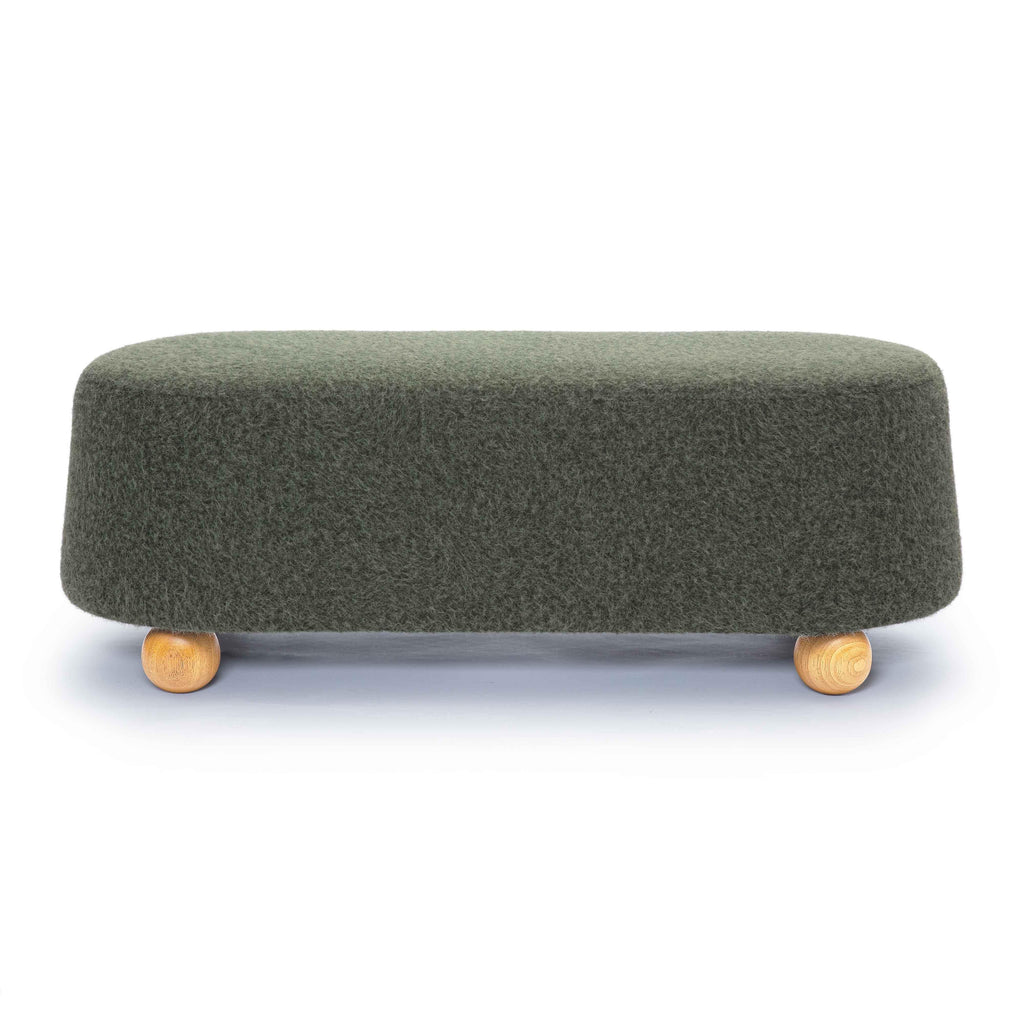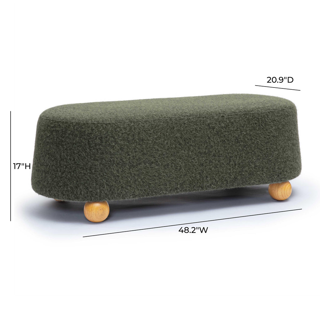 Add a playful charm to your space with the Jaine Stool, boasting a slightly conical shape that catches the eye. Its spherical solid wood legs provide a sturdy base, while the nubby boucle (available in chocolate brown, cream, or forest green) or loose faux mohair (available in forest green and stone grey) upholsteries add a modern, textured touch. Not only is it on-trend with its color palette, but this ottoman also seamlessly blends contemporary style with a tactile experience, making it a must-have for any room. Also available in two size variations!