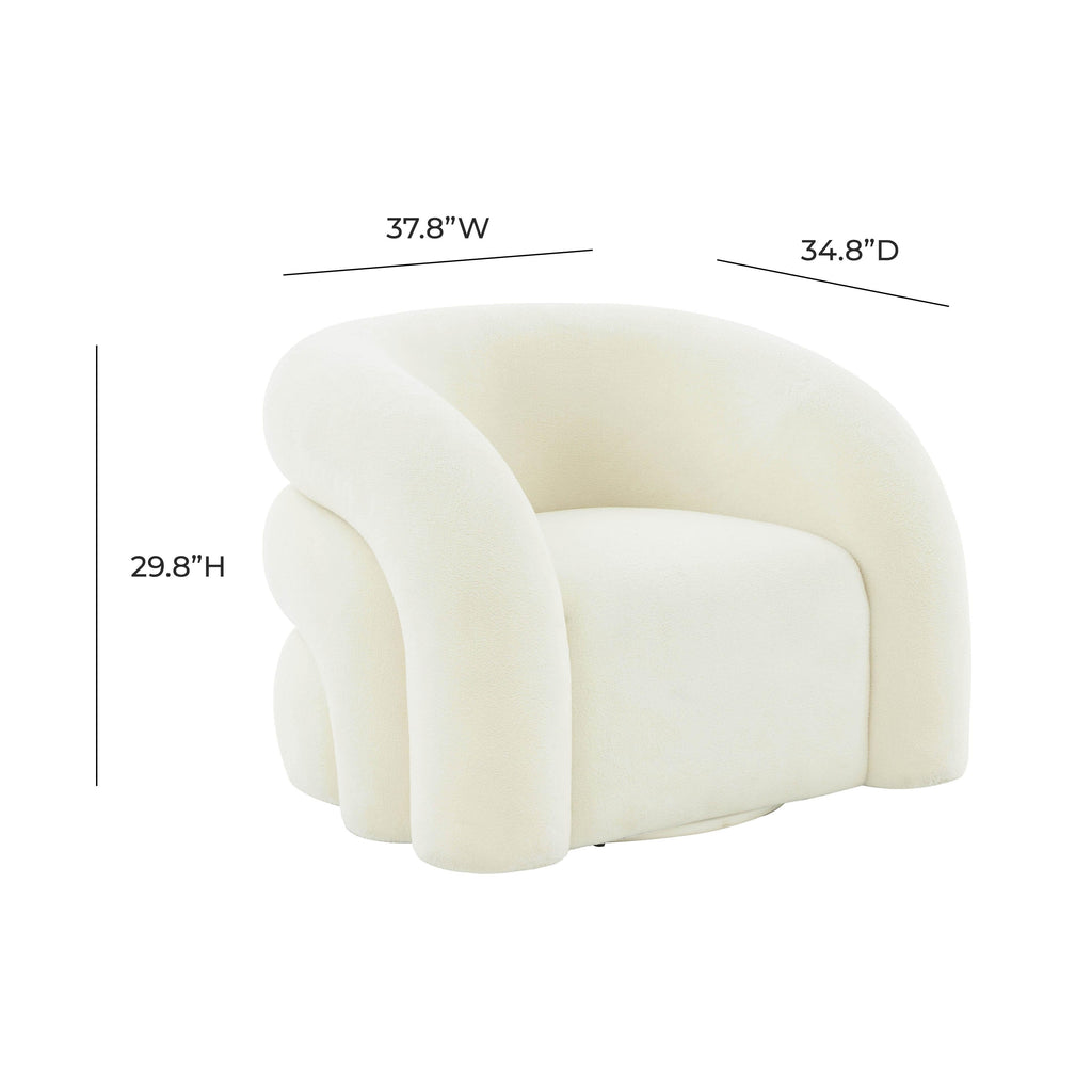 A totally-tubular postmodern masterpiece, the Slipper Chair is making her debut. The overstuffed, sumptuous design of the Slipper makes her a dream to 'slip into' and cozy up. Available in cream velvet or vegan shearling.